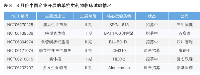 2024年3月份美國Clinicaltrial數據庫臨床試驗數據顯示:單抗藥物臨床試驗數量飆升?中國貢獻六項研究