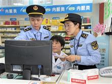 圖為該局執法人員正在轄區內一家藥店開展相關檢查。(孫俊輝 孫建新 攝)