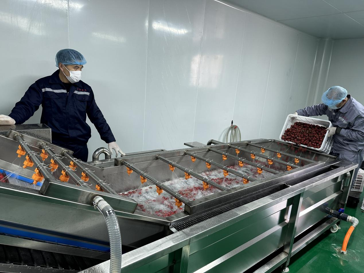 魯方藥業洗潤間,工作人員正在清洗山楂