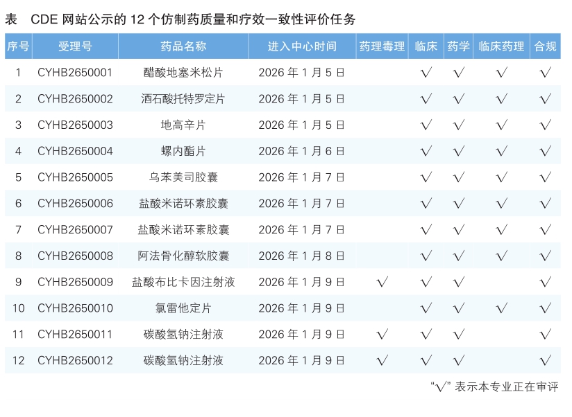5.CDE網站公示12個仿制藥質量和療效一致性評價任務(詳見表),涉及醋酸地塞米松片等品種。