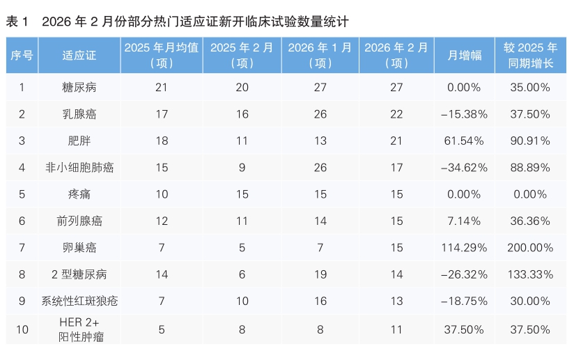 2月份美國Clinicaltrial數據庫臨床試驗數據顯示—— 糖尿病、乳腺癌、肥胖等適應證成研發熱點