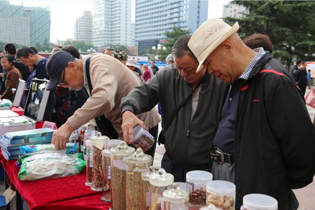 圖為蘭州市民在真假中藥材鑒別臺前駐足觀看。丁怡媛 王發基 攝影報道