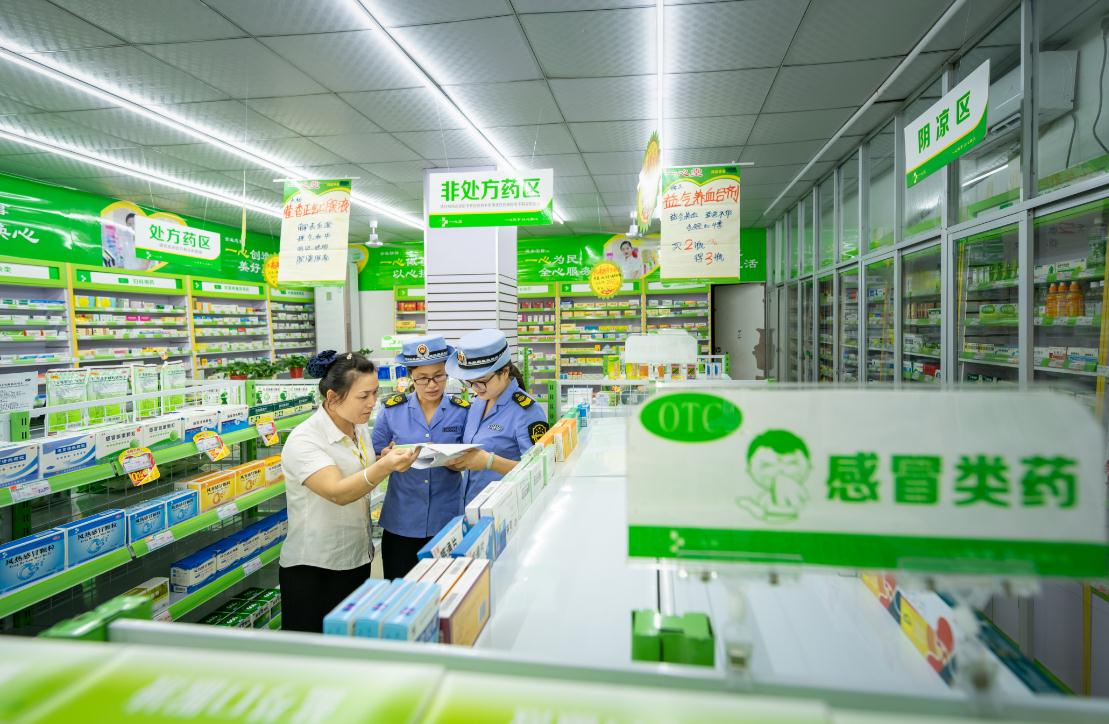 圖為執(zhí)法人員在一家藥店檢查。趙海軍 孫玉安 攝影報(bào)道