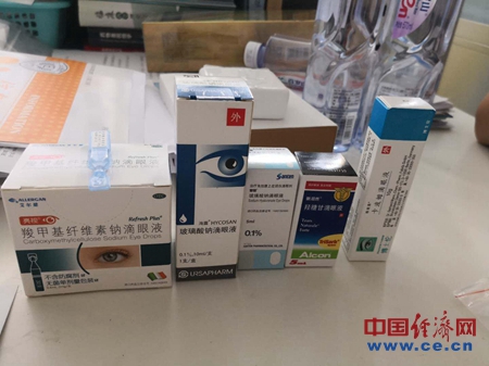 臨床常用的部分滴眼液。經(jīng)濟日報-中國經(jīng)濟網(wǎng)記者朱國旺攝