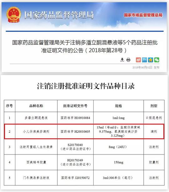 今年6月,國家藥監總局發布了《關于注銷多潘立酮混懸液等5個藥品注冊批準證明文件的公告》,經企業主動申請注銷了多潘立酮混懸液(嗎丁啉)、小兒偽麻美芬滴劑(艾暢)、注射用重組人生長激素、西美瑞韋膠囊和門冬胰島素注射液5個品種的批文,其中兒童暢銷藥艾暢和嗎丁啉被不少父母所熟知。