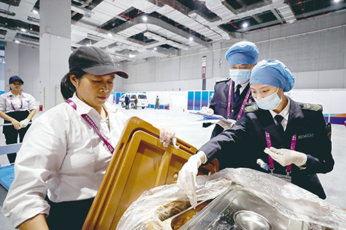 上圖為該局執(zhí)法人員在進(jìn)博會(huì)現(xiàn)場(chǎng)檢測(cè)食品。陳炅瑋 攝