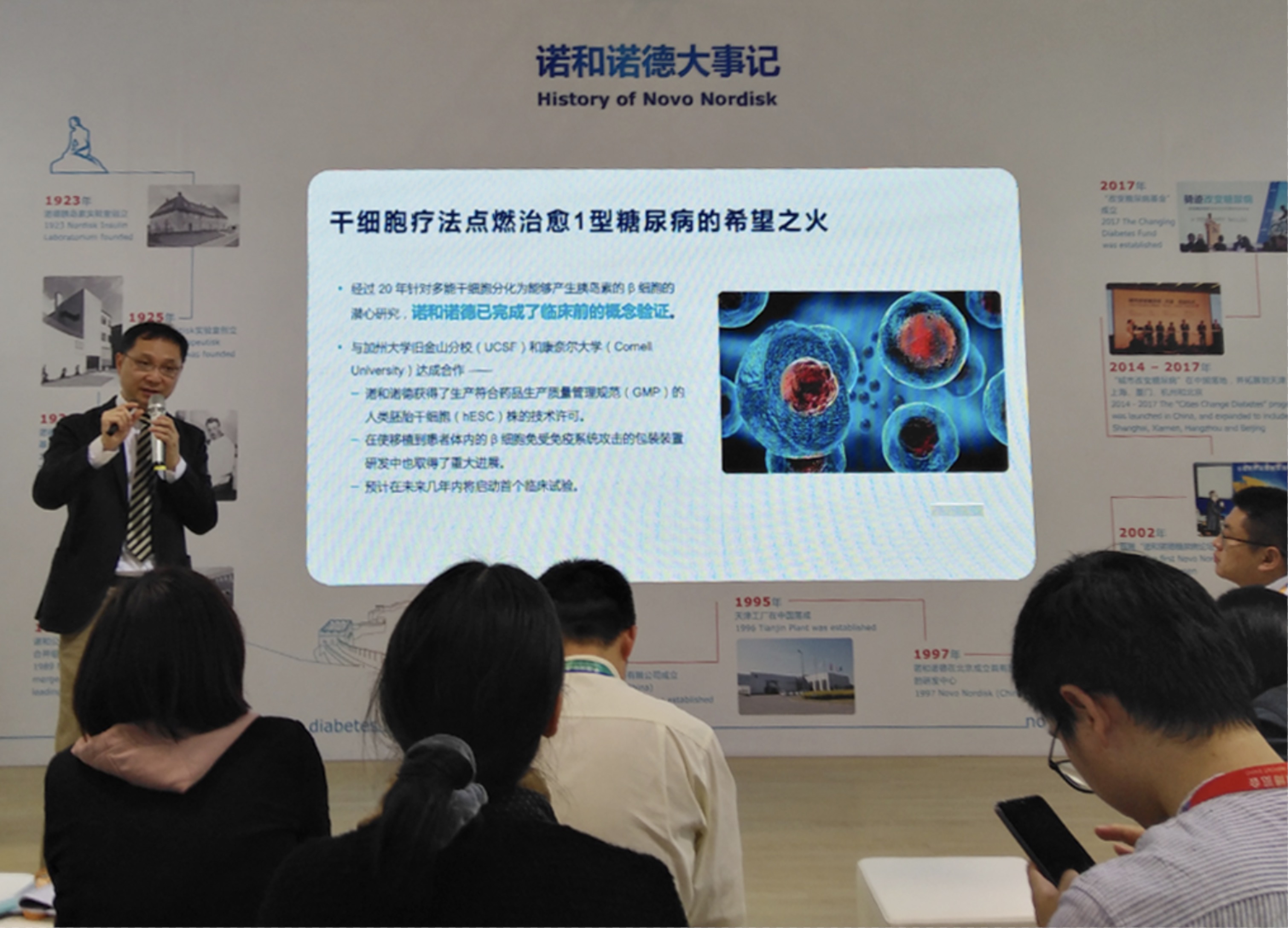 據悉,此次諾和諾德展示重點之一,是攻克1型糖尿病關鍵技術——干細胞療法。諾和諾德中國醫藥部副總裁張克洲介紹,干細胞療法主要針對1型糖尿病,通過干細胞移植的方法從根本上解決患者體內胰島素絕對缺乏的問題,從而起到治愈疾病的作用。