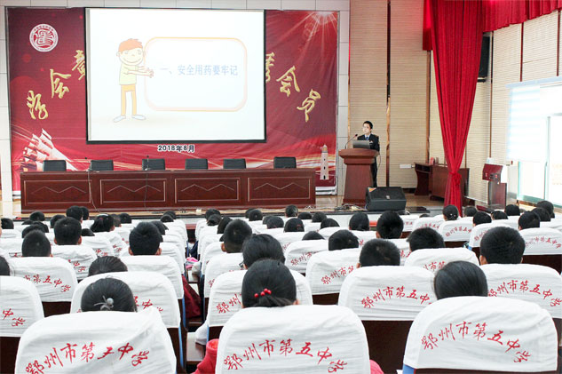 近日,湖北省鄂州市食品藥品監管局工作人員走進鄂州市第五中學,開展“安全用藥校園行”公益宣傳活動,以提升學校師生的安全用藥意識。本報記者 張皓亮 通訊員 王芳 攝影報道