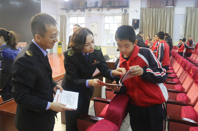 活動中,藥監人員向實驗中學學生講解避免藥物濫用知識