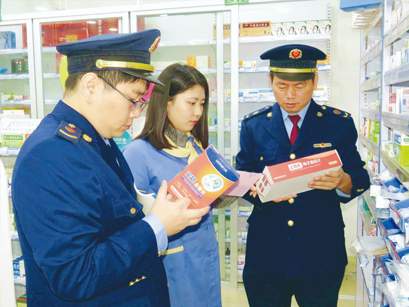 日前,福建省龍海市市場監管局組織執法力量,對全市醫療器械經營企業、藥品零售企業醫療器械專柜開展了全面的網格化檢查,重點檢查醫療器械產品進貨渠道是否合法,供貨方資質證件是否齊全有效,是否有合格證明、注冊證、備案證等。 圖為該局執法人員在一家醫藥超市的醫療器械專柜進行檢查。 鄭愛國 攝