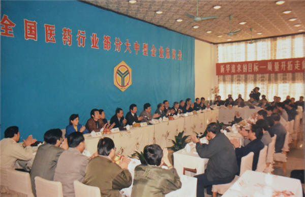 1990年,全國醫(yī)藥行業(yè)部分大中型企業(yè)座談會在山東新華制藥廠召開。20世紀90年代,國家經(jīng)濟發(fā)展和體制改革,鼓勵組建和發(fā)展醫(yī)藥集團,調(diào)整產(chǎn)品結(jié)構(gòu)和提高效益。會上研究確立了山東新華、魯抗醫(yī)藥、東北制藥、華北制藥等四大醫(yī)藥分別在解熱鎮(zhèn)痛、維生素、抗生素等方面的發(fā)展。 郭德恩提供