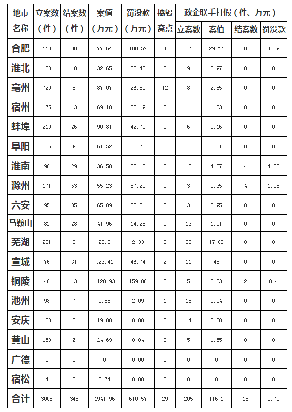 安徽2019年元旦春節期間打假專項行動第一次“統一攻堅行動周”期間共立案3005件