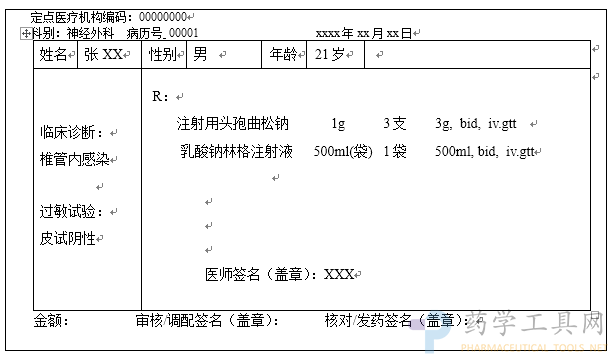 處方案例:男性,21歲,患椎管內感染