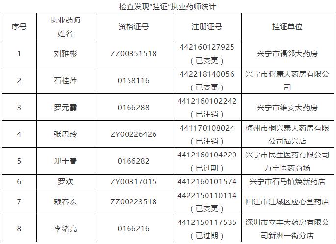 附件:檢查發現“掛證”執業藥師統計