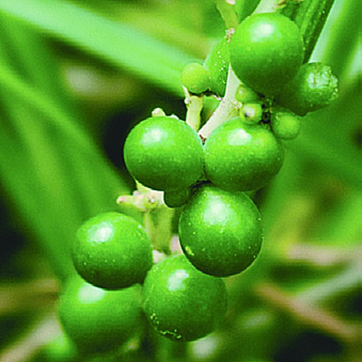 漿果圓球形,直徑5~7毫米,成熟后為深綠色或碧藍(lán)色。果期8~9月。