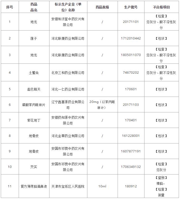 為加強藥品監(jiān)管,保障藥品使用安全有效,對在天津市藥品生產(chǎn)、經(jīng)營、使用環(huán)節(jié)監(jiān)督抽驗中11批次不符合標準規(guī)定的藥品予以公告(詳見附件)。