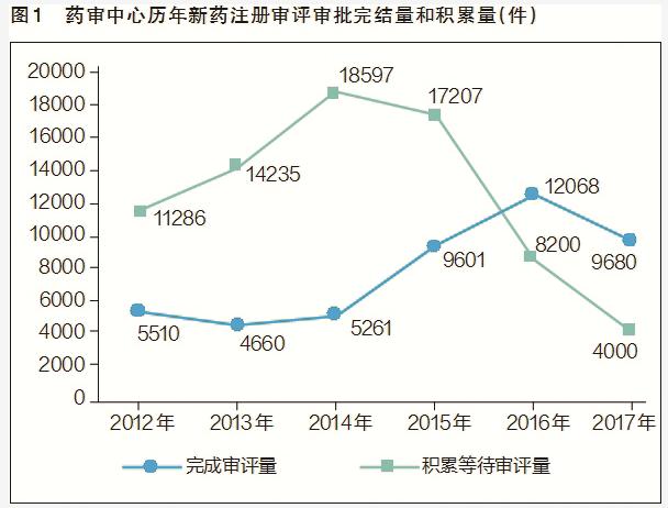 近年來,我國藥品審評審批速度不斷提高,新藥審批等待時間大幅縮減。從藥品審評中心(CDE)公布的歷年藥品審評報告可以看出,藥品注冊申請審評審批速度明顯加快,從2015年之前的年均5000件審評完結(jié)量大幅提升到2017年的1萬件左右;積壓等待審評量從2015年高峰期的2.2萬件下降到2017年的約4000件(見圖1),目前注冊積壓已逐步消除,90%的藥品注冊申請實現(xiàn)了法定時限審評。