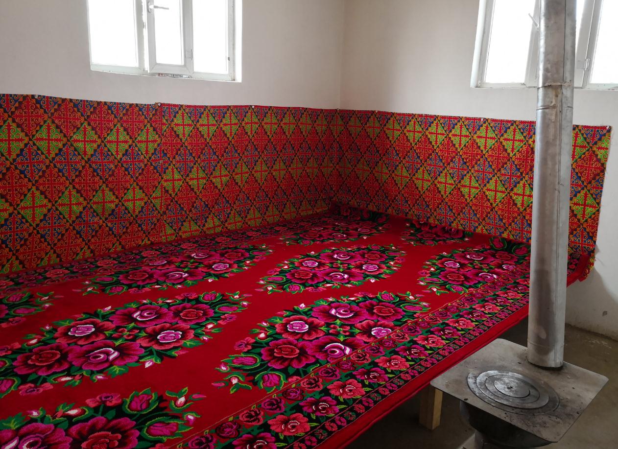 “我家也是農村的,但這樣的情況確實也比較少見。我們剛到的時候,吾麥爾大叔家連床都沒有。”余振喜回憶初次來到吾麥爾家時的情景,“看到大叔家的情況心里很急,在駐村工作隊副隊長斯坎德爾的協助下,我自費請木匠做了一頂能睡5人的大木炕,之后又到巴扎上買了一些墊子鋪在炕上,這樣他們睡著能更舒服一些。后來發現大叔家廁所也沒有,就帶領幾位同事用了一天的功夫修了一個旱廁。”