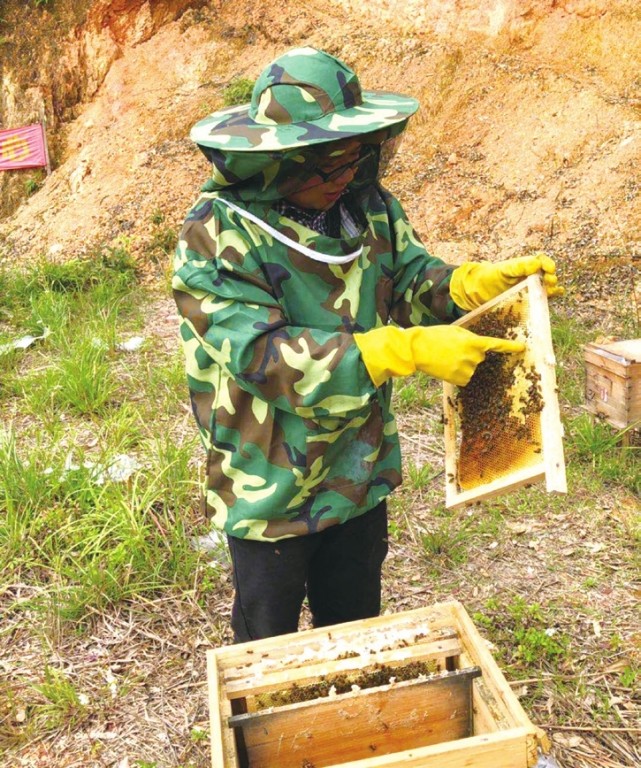 玉石村自然條件差,村民居住分散,集體經濟收入低,基礎設施欠缺。冼健寧了解到部分村民有養蜂的經驗,與村兩委商量之后,大家一致同意以村集體控股、農戶入股的形式成立公司,經營一份“甜蜜的事業”。