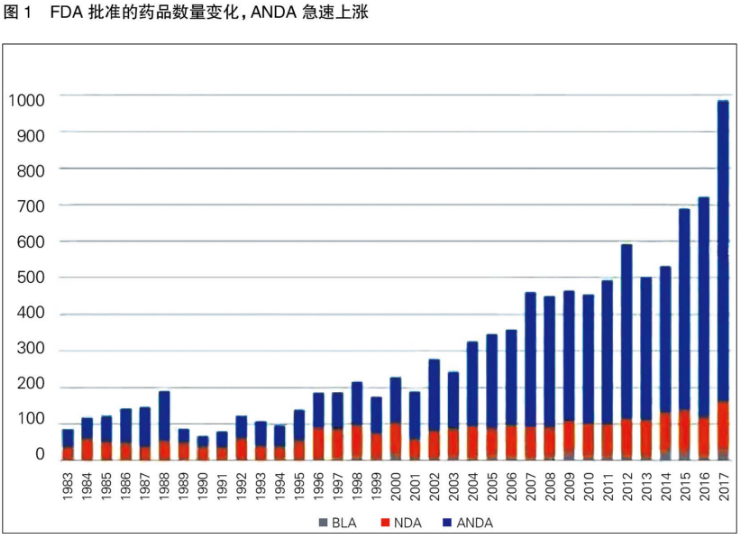 圖1 FDA批準的藥品數量變化,ANDA急速上漲