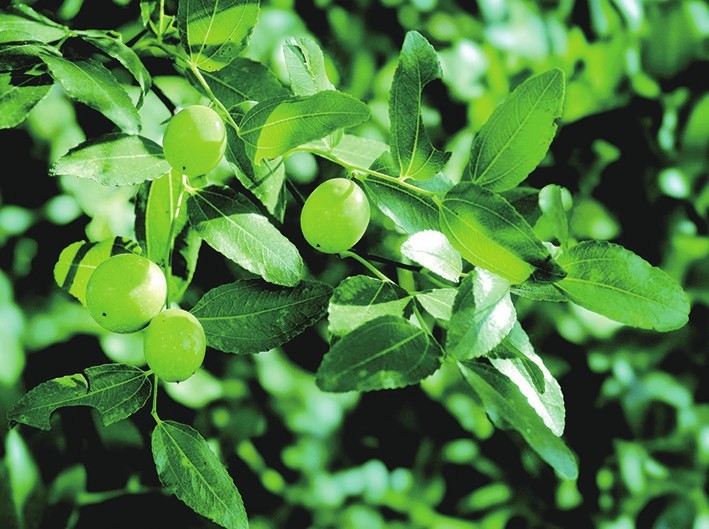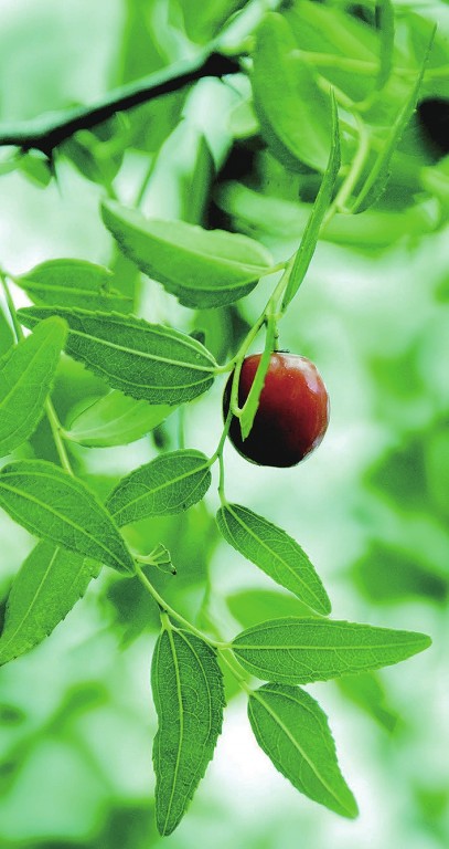 酸棗,鼠李科,別名棘、棘子、野棗、山棗、角針等,落葉灌木或小喬木,分布于華北、西北以及遼寧、江蘇、安徽、山東、河南等地,各地廣有栽培。耐干旱,常生于向陽或干燥的山坡、山谷、丘陵、平原、路旁及荒地上。
