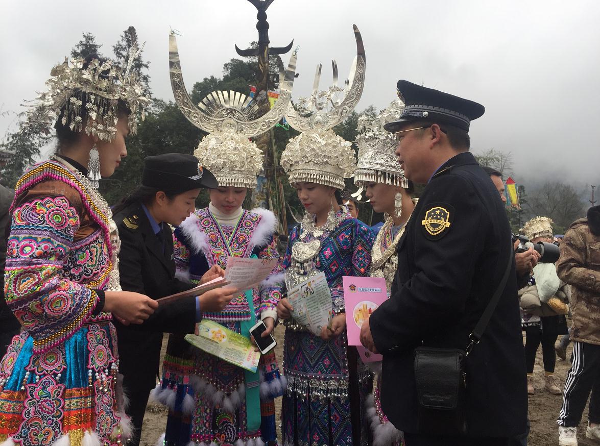 2月20日,廣西壯族自治區融水苗族自治縣市場監管局執法人員在少數民族特色節日趕坡會期間,積極開展“安全用藥,共享健康”現場科普宣傳活動,通過懸掛橫幅、發放安全用藥宣傳資料、設立咨詢服務臺等形式,普及藥品安全常識,為群眾提供藥品安全咨詢服務。(楊燕冰 攝)
