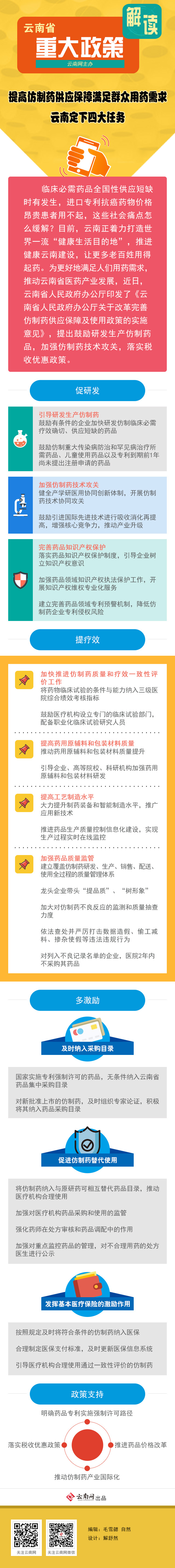 臨床必需藥品全國性供應短缺時有發生,進口專利抗癌藥物價格昂貴患者用不起,這些社會痛點怎么緩解?目前,云南正著力打造世界一流“健康生活目的地”,推進健康云南建設,讓更多老百姓用得起藥。為更好地滿足人們用藥需求,推動云南省醫藥產業發展,近日,云南省人民政府辦公廳印發了《云南省人民政府辦公廳關于改革完善仿制藥供應保障及使用政策的實施意見》,提出鼓勵研發生產仿制藥品,加強仿制藥技術攻關,落實稅收優惠政策。