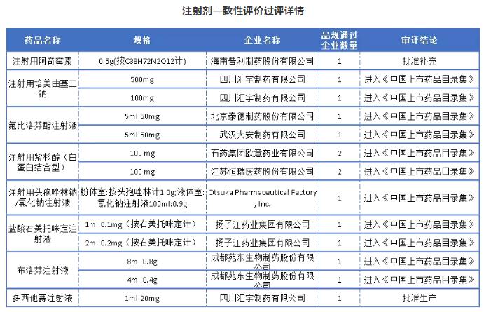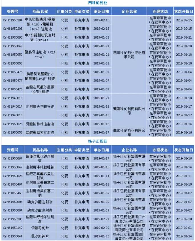 值得一提的是,以上5個企業除了上海上藥以外,宜昌人福藥業、科倫藥業、揚子江藥業以及齊魯藥業近兩月申報的一致性評價注射劑成主導,且科倫藥業和齊魯制藥申報的全部是注射劑,宜昌人福藥業8個品種有5個是注射劑、揚子江8個品種中有6個是注射劑。詳情可見下表:
