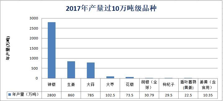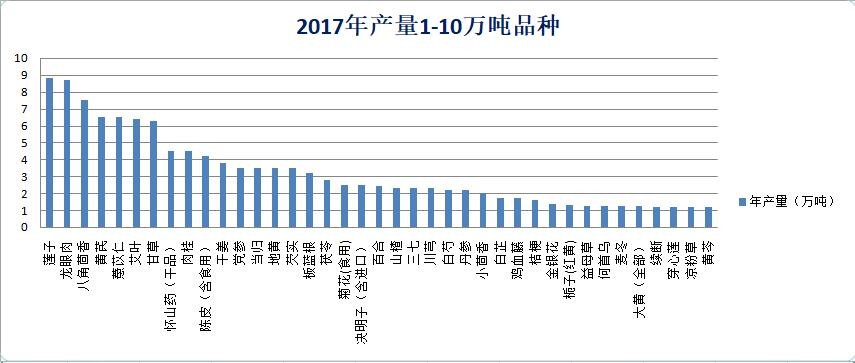 圖11 2017年,產量超過10萬噸的藥食兩用大品種(天地云圖大數據)