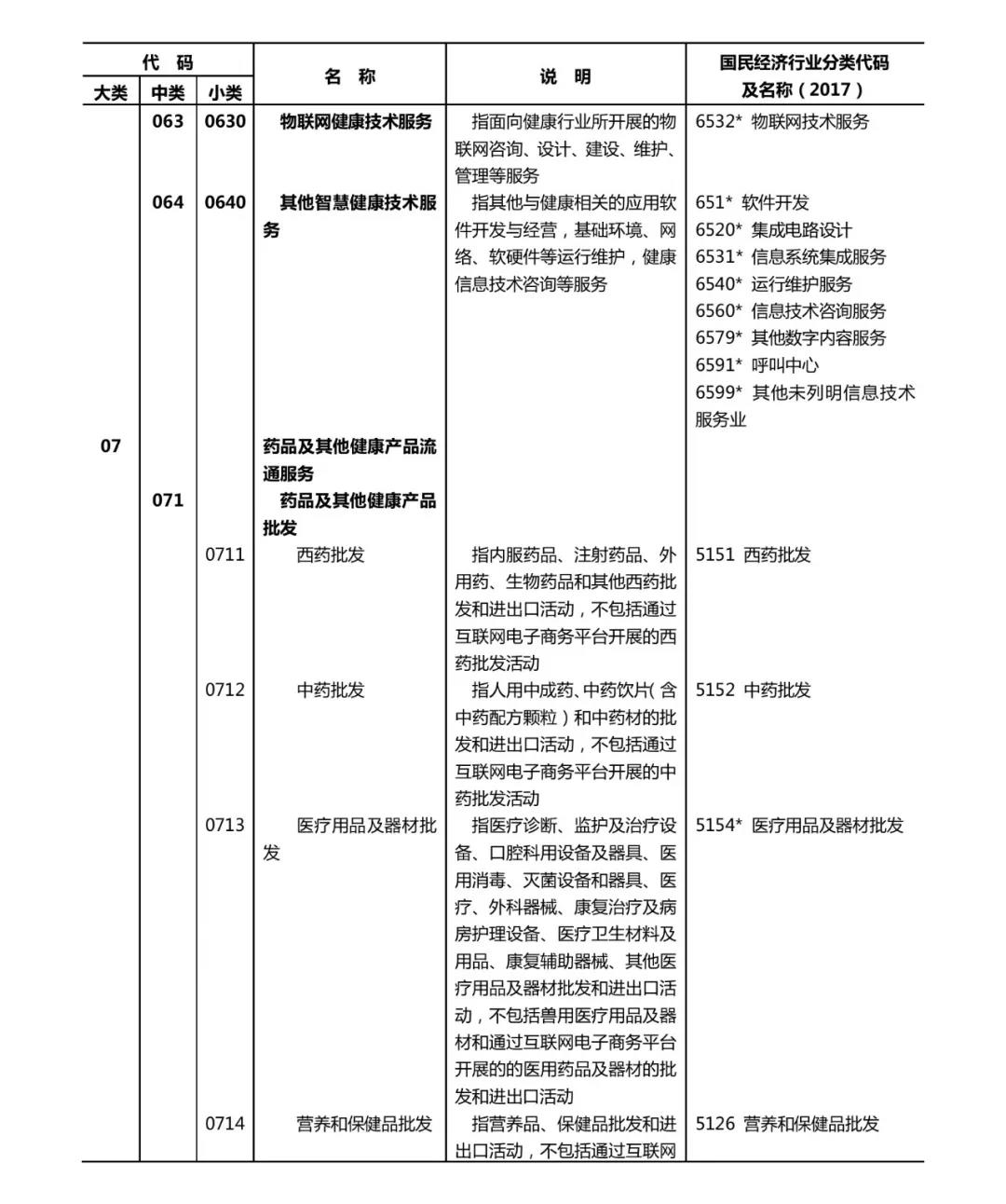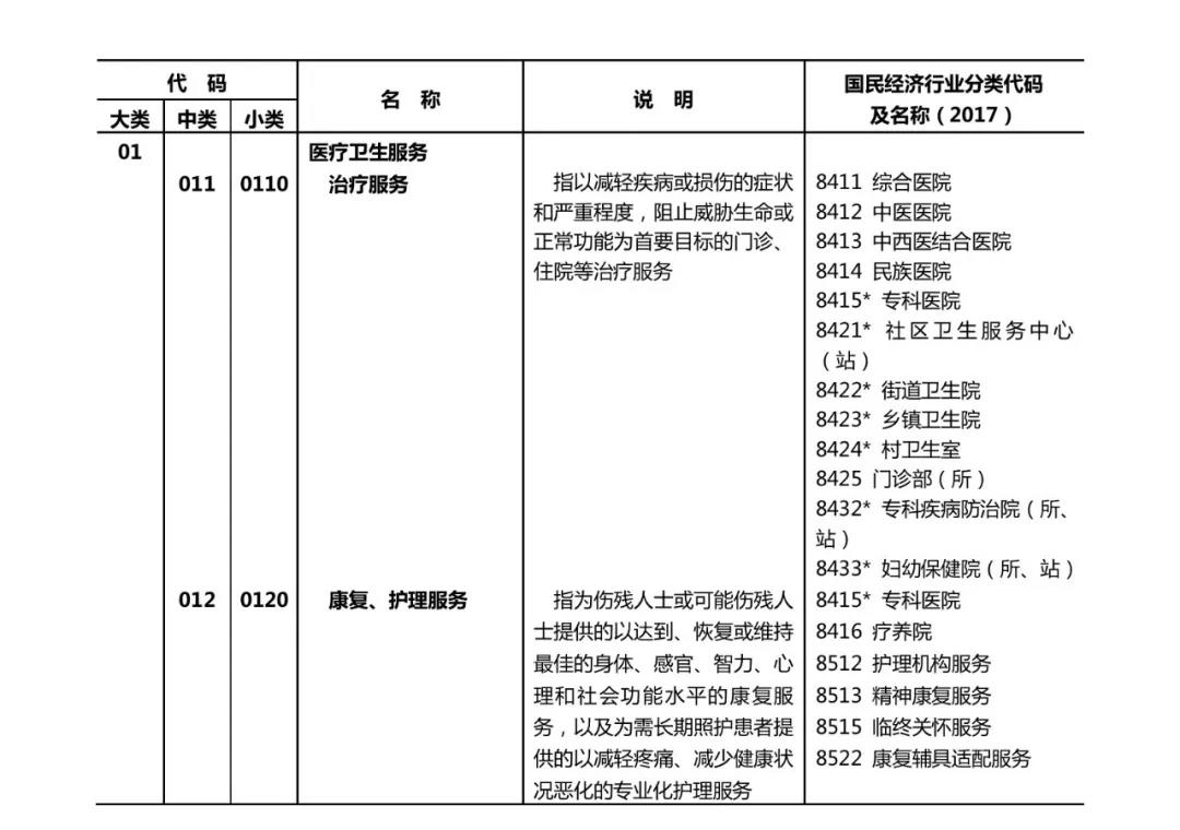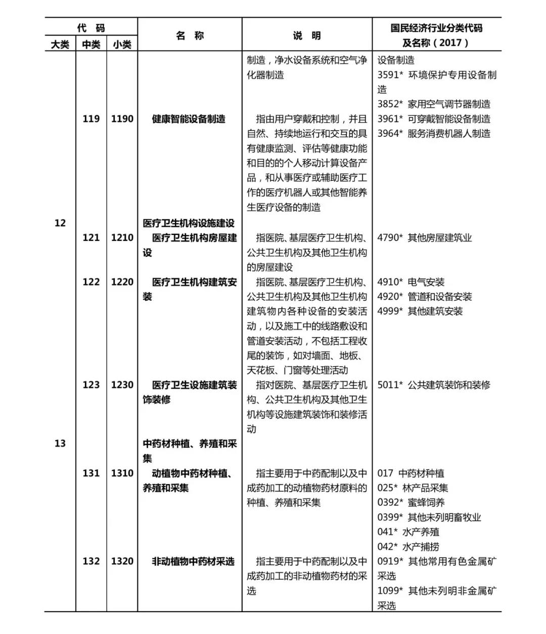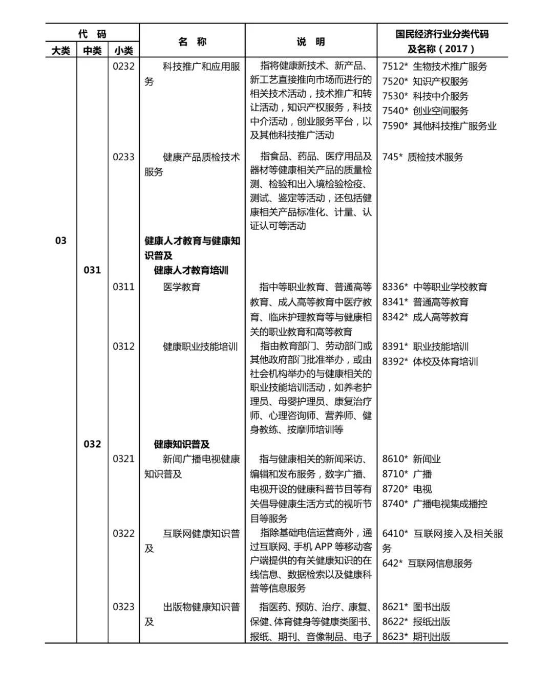 (一)本分類建立了與《國民經濟行業分類》(GB/T 4754-2017)的對應關系。在國民經濟行業分類中僅部分活動屬于健康產業的,行業代碼用“*”做標記。