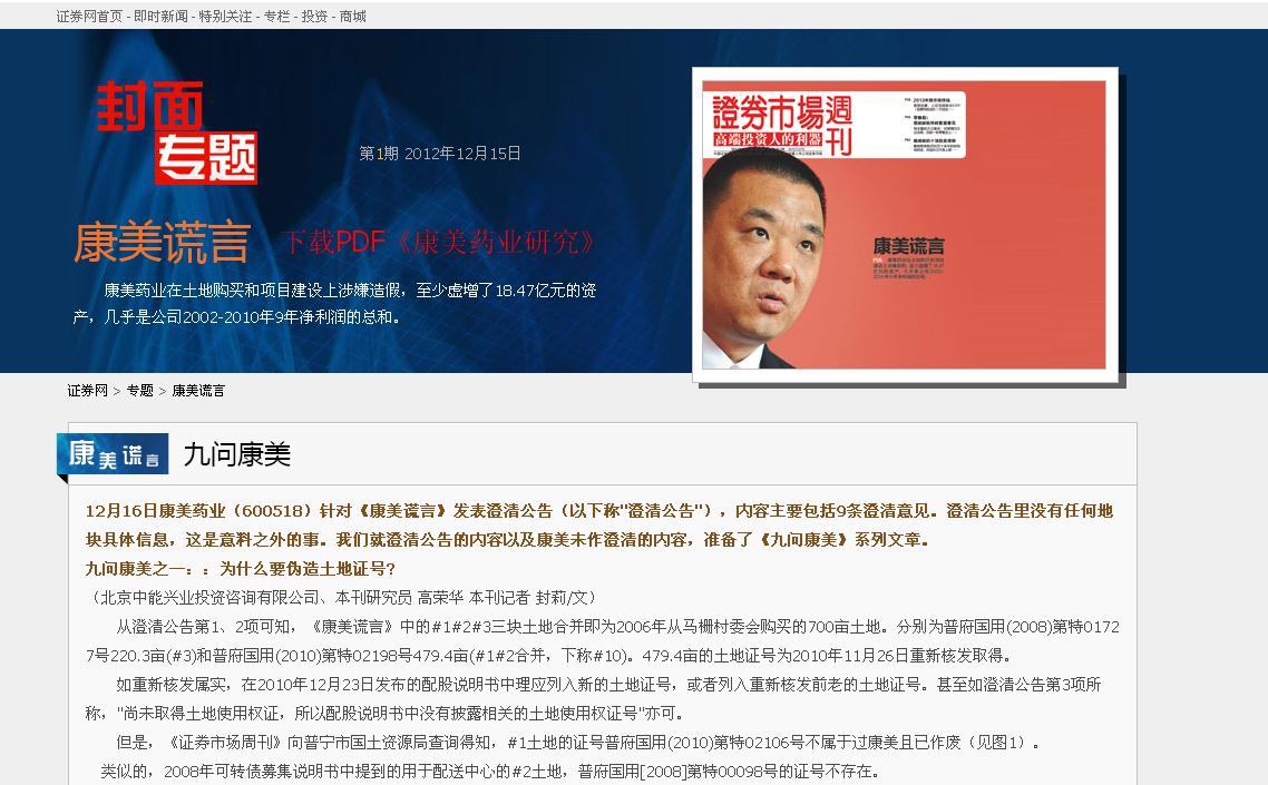 2012年媒體對康美藥業發出質疑。