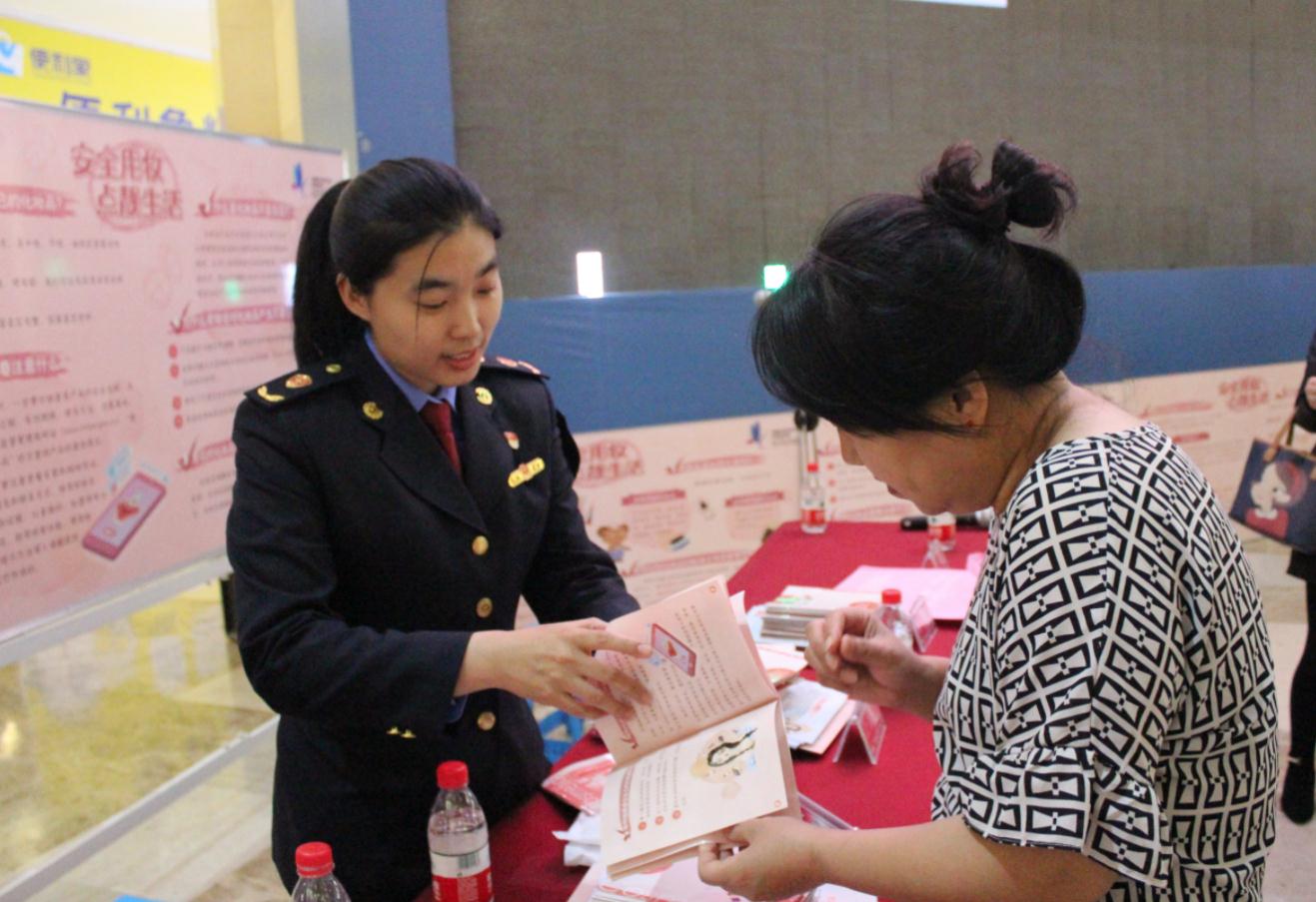 市場監管部門相關人員與群眾在活動現場交流化妝品相關知識。陳陽/攝