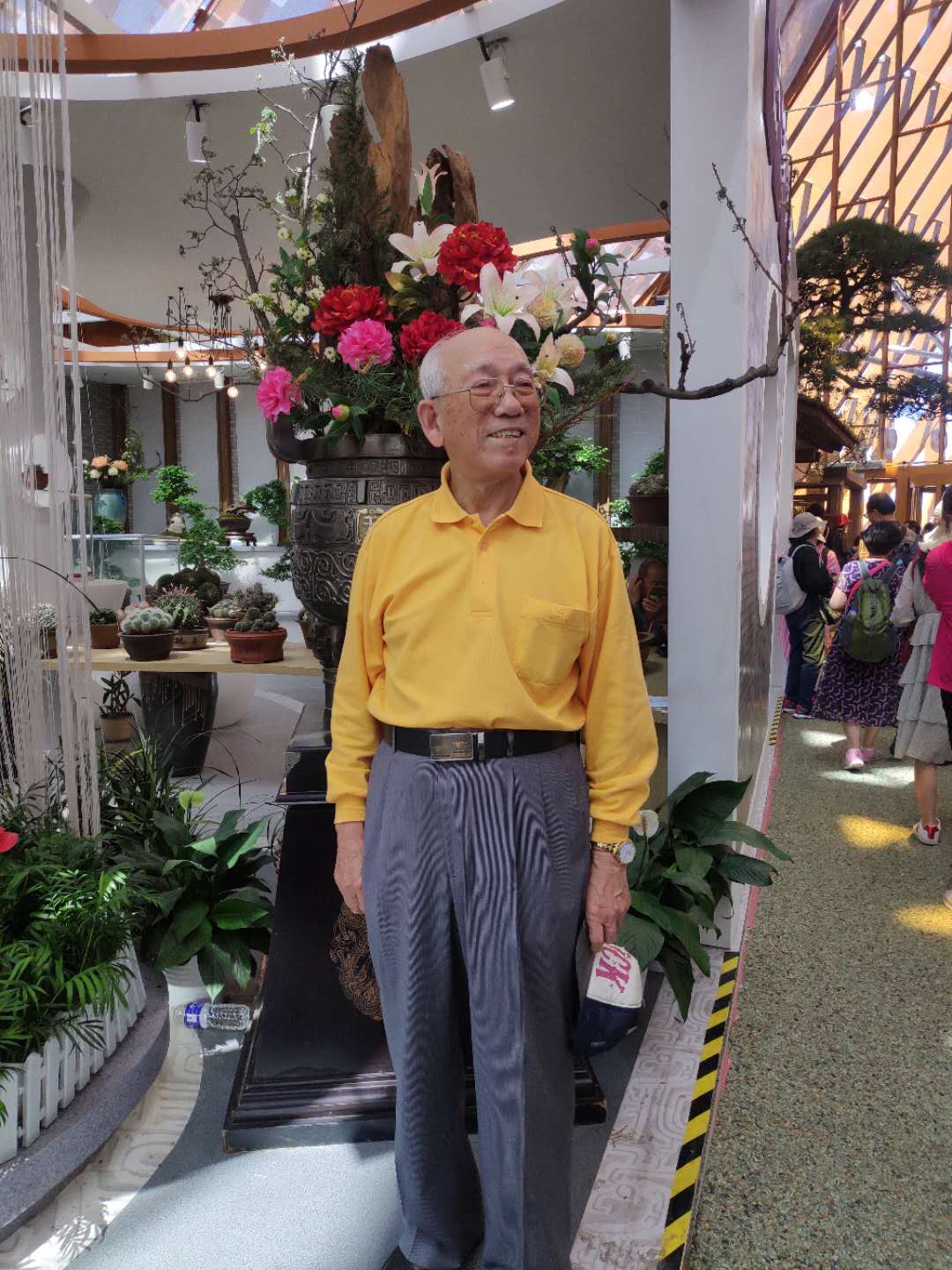 媯汭湖畔的中國館,宛如一柄溫潤的如意,舒展于山水之間。中國館按照“生生不息,錦繡中華”的理念,劃分為中國生態文化展區、省區市園藝產業成就展區、園藝類高校及科研單位展區、非物質文化遺產插花藝術展區,是一座會“呼吸”、有“生命”的綠色建筑。83歲高齡的老社長余傳隆同志興奮地在湖北展廳前拍照紀念,他說湖北是自己曾經生活學習的地方。彭澤邦同志在貴州展廳邊看邊感慨,表達對自己家鄉近年來到處是綠水青山的無限熱愛。