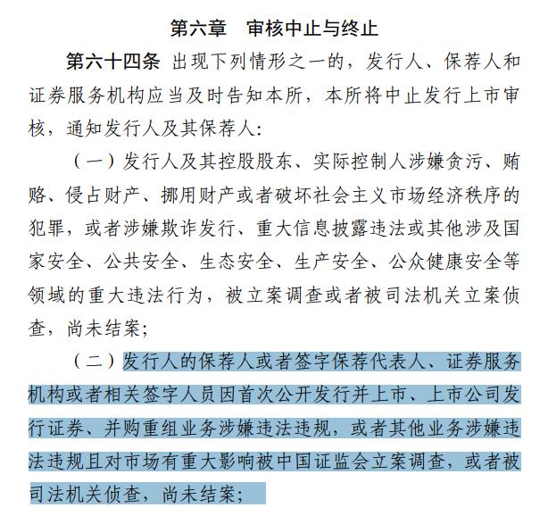 根據《上海證券交易所科創板股票發行上市審核規則》,出現包括“發行人的保薦人或者簽字保薦代表人、證券服務機構或者相關簽字人員因首次公開發行并上市、上市公司發行證券、并購重組業務涉嫌違法違規,或者其他業務涉嫌違法違規且對市場有重大影響被中國證監會立案調查,或者被司法機關偵查,尚未結案”在內的七種情形之一時,上交所將中止發行上市審核。而上交所5月24日中止審核的企業中有3家會計師事務所均為正中珠江會計師事務所。