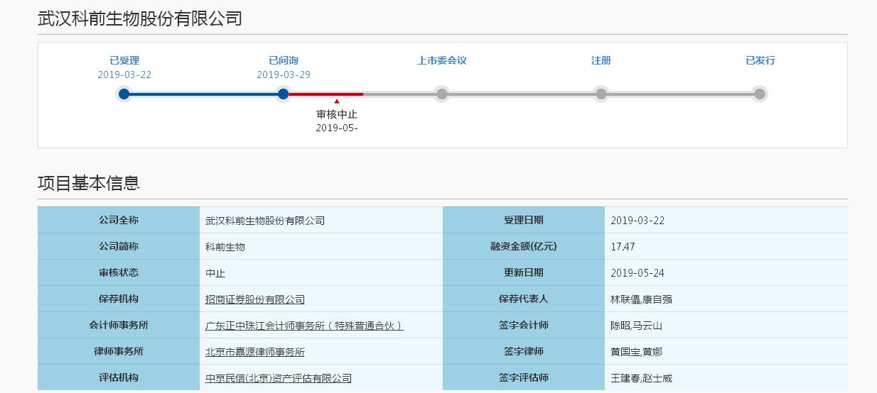 生物醫藥企業“科前生物”科創板申請審核被“中止”