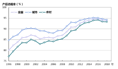 圖12 1996—2018年產后訪視率變化趨勢