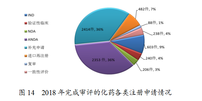 2018年,藥審中心審評通過批準IND申請947件,審評通過(往年的年度審評報告中表述為“審評通過建議批準”,下同)NDA 175件,審評通過ANDA 1038件。