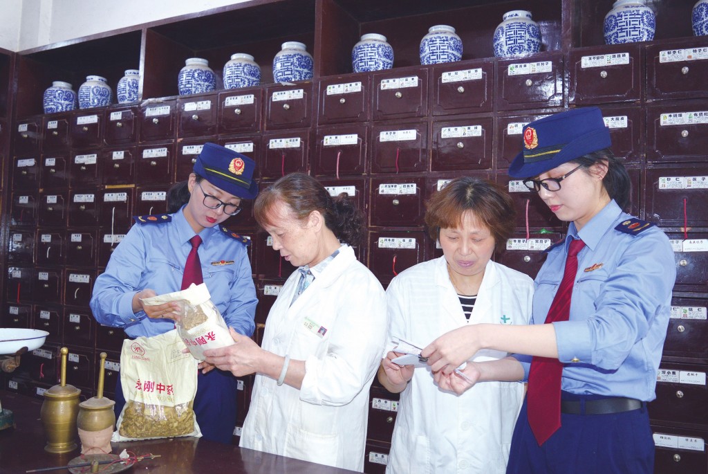 圖為執(zhí)法人員在一家中藥房檢查。(孫建新 周建莉 攝影報道)