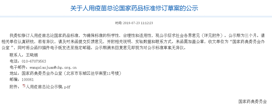 (注:關于人用疫苗總論國家藥品標準修訂草案的公示 - 國家藥典委員會 http://www.chp.org.cn/view/ff8080816a583947016c1cd37e750c69?a=BZSWZP 鏈接內附PDF為花臉版)