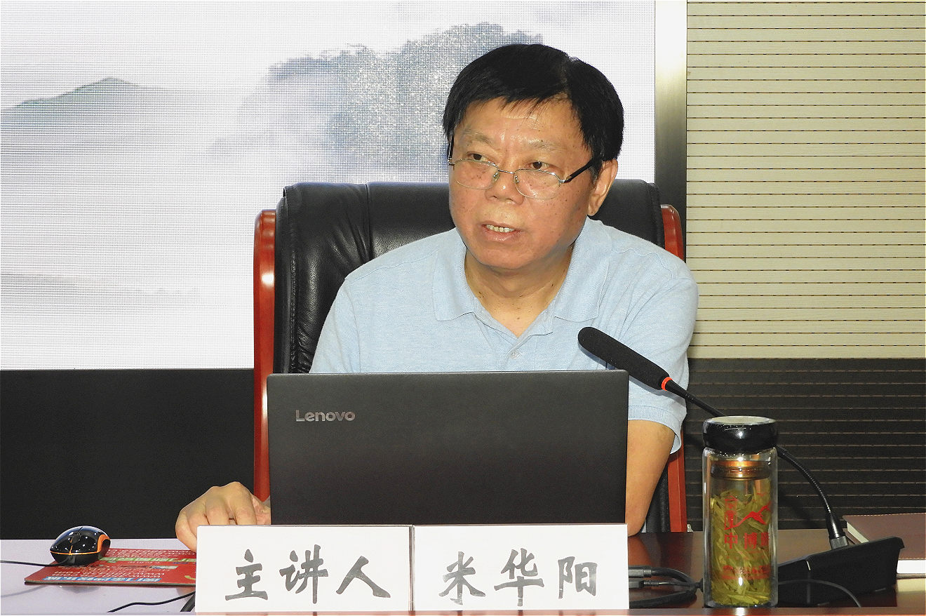 圖為安徽省藥品監(jiān)督管理局藥品化妝品流通監(jiān)管處處長(zhǎng)米華陽(yáng)作主題授課。(記者蔣守福/攝)
