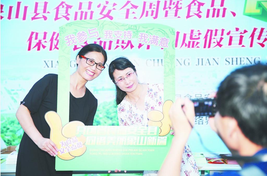 圖為群眾熱情參與為食品安全工作點贊合影活動/攝影 金旭