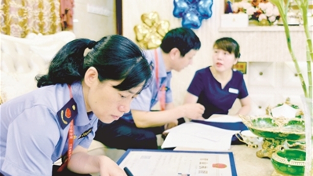 近日,江西省萍鄉市市場和質量監管局執法人員對轄區內化妝品專營店、美容美發場所等開展專項檢查。