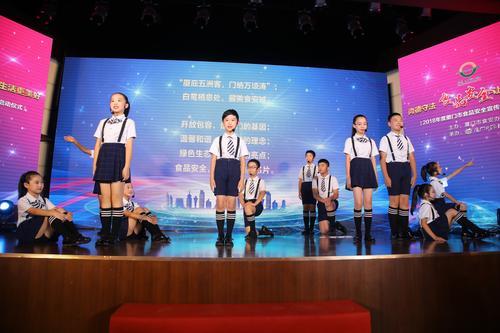 7月17日,廈門市舉行2018年食品安全宣傳周啟動(dòng)儀式,并首次采取全程網(wǎng)絡(luò)直播形式,讓更多市民參與其中。 廈門市少年宮學(xué)生表演詩(shī)朗誦《最美食安城》。