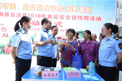 7月17日,廣西壯族自治區環江毛南族自治縣召開主題為“尚德守法 食品安全讓生活更美好”的2018年食品安全宣傳周活動。