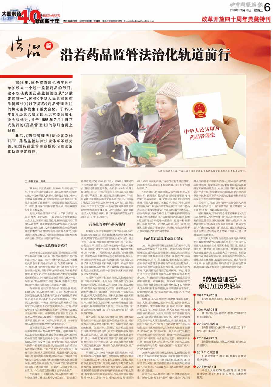 《藥品管理法》歷經多次修訂/正,藥品監管法律法規體系不斷完善,我國藥品監管事業始終沿著法治化軌道堅定前行。