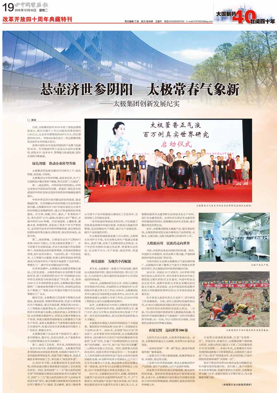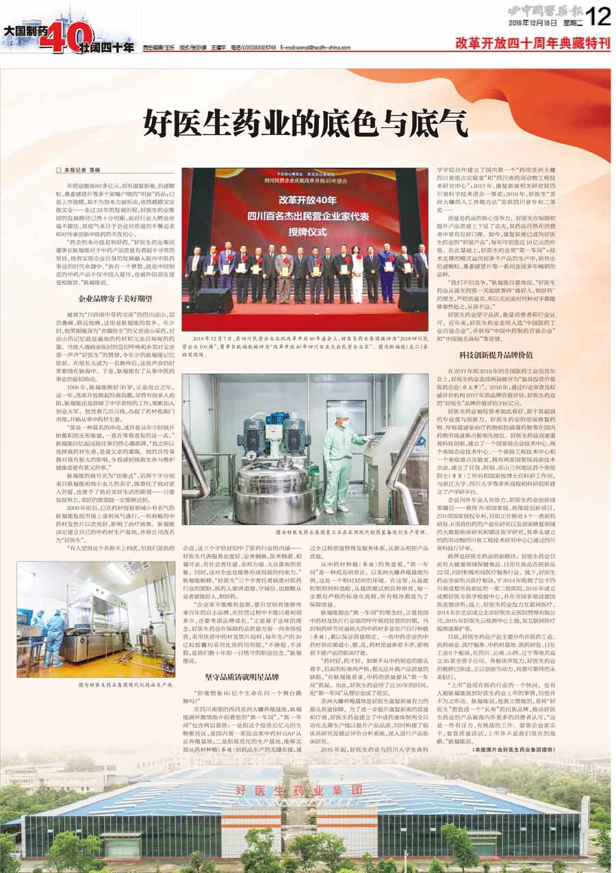 藥企的本分就是制好藥。我有一個夢想,就是中國制造的中藥產品不僅中國人愛用,也被外國朋友接受和推崇。