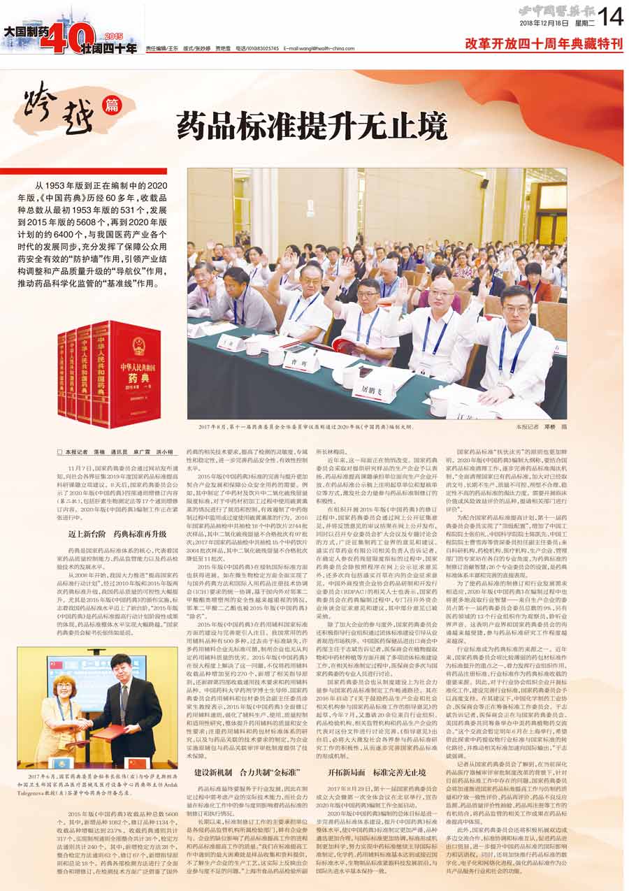 《中國藥典》與我國醫藥產業各個時代的發展同步,充分發揮了保障公眾用藥安全有效的"防護墻"作用,引領產業結構調整和產品質量升級的"導航儀"作用,推動藥品科學化監管的"基準線"作用。