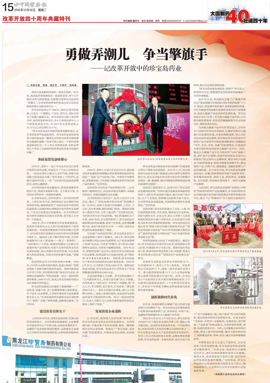 珍寶島藥業是在國家的改革浪潮中成立、在自身的改革中發展起來的。珍寶島藥業是國家改革開放的受益者。