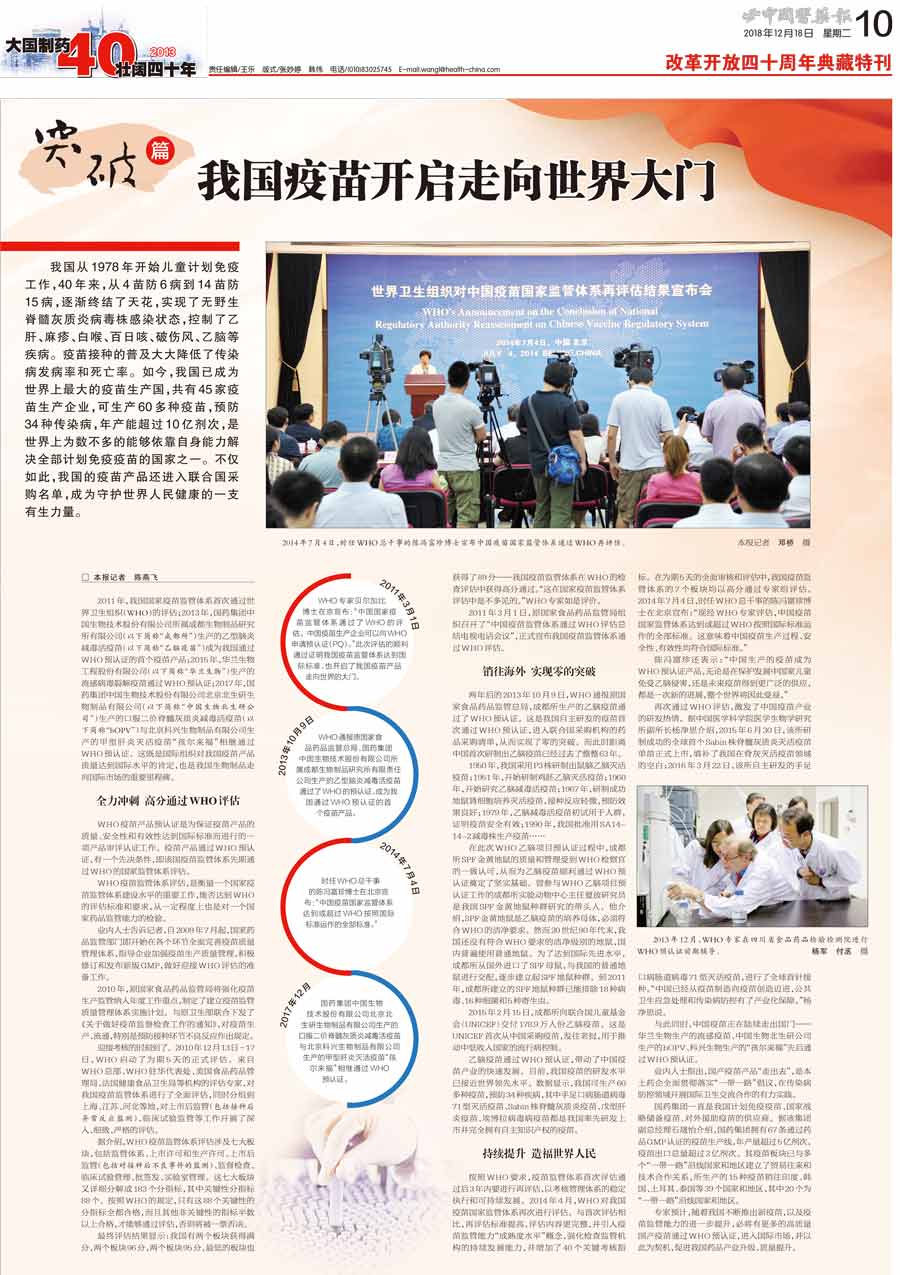 我國已成為世界上最大的疫苗生產國,我國的疫苗產品還進入聯合國采購名單,成為守護世界人民健康的一支有生力量。