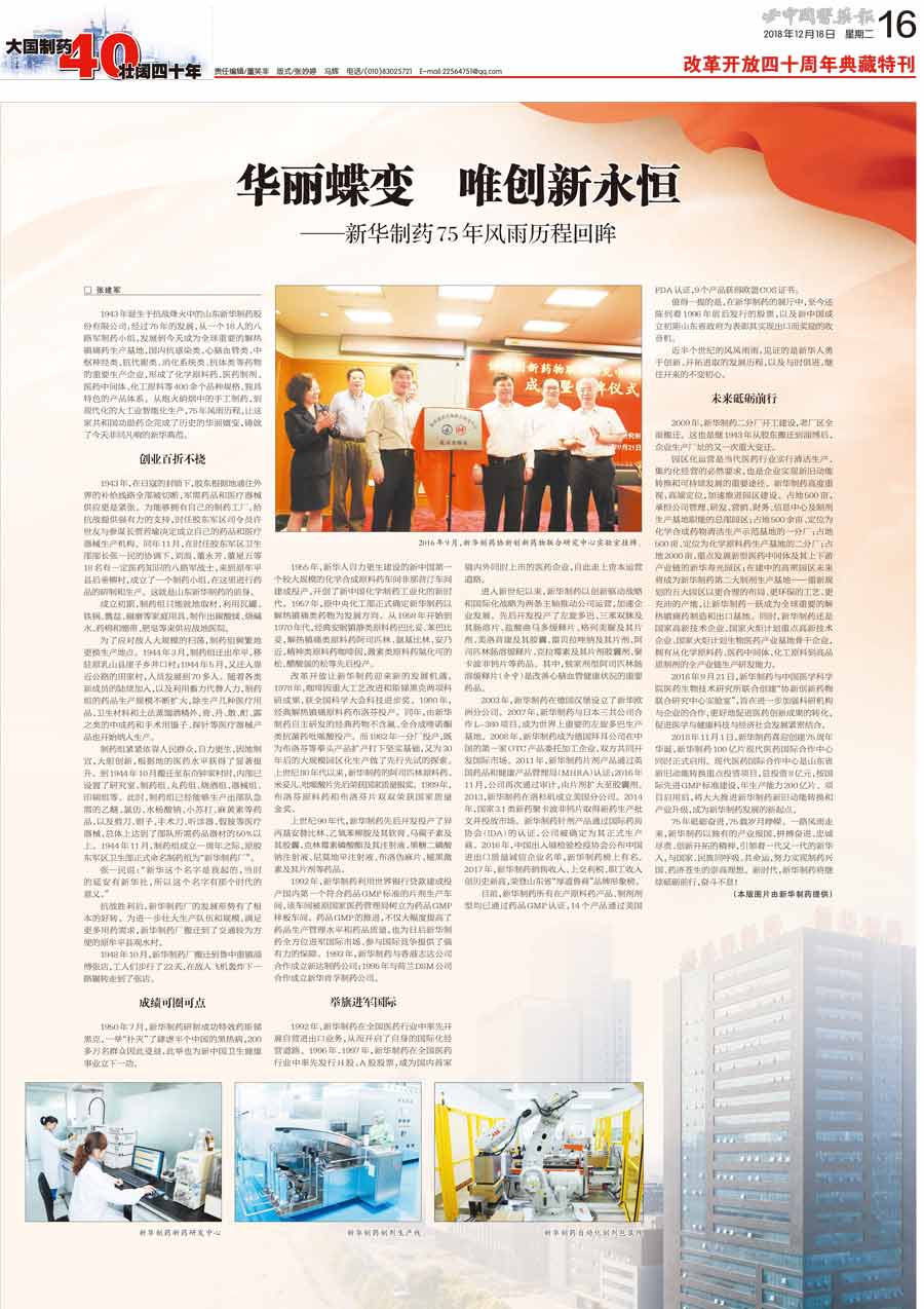 一路風雨走來,新華制藥以獨有的產業報國、拼搏奮進、忠誠盡責、創新開拓的精神,引領著一代又一代的新華人,與國家、民族同呼吸、共命運,努力實現制藥興國、藥濟蒼生的崇高理想。